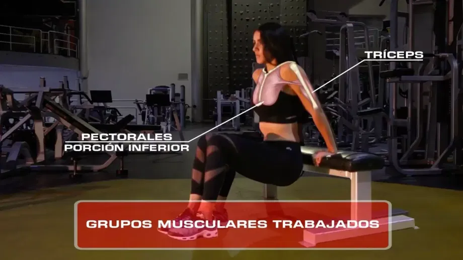 - Coloca tus manos al borde del banco, manteniéndolas cerca de tu cuerpo. Asegúrate de que tu espalda permanezca recta y tus pies estén colocados cerca del cuerpo para comenzar.