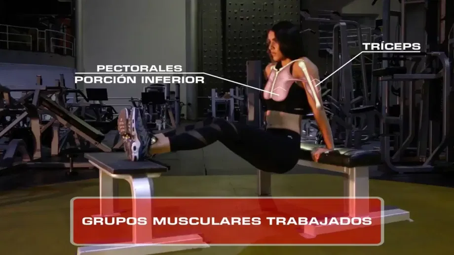- Coloca tus manos en el borde del banco, manteniéndolas cerca de tu cuerpo. Asegúrate de que tu espalda esté recta.